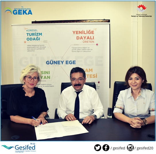 GEKA VE GESİFED TEKNİK DESTEK PROJE SÖZLEŞMESİNİ İMZALADI Güney Ege Kalkınma Ajansı (GEKA)’ndan teknik destek almaya hak kazanan ‘GESİFED Bölge Kalkınması İçin Kurum Kapasitesini Geliştiriyor’ projesinin sözleşmesi GEKA ve GESİFED arasında imzalandı. GESİFED Güney Ege Bölge Planı vizyonu çerçevesinde; bölgedeki kurumsal ve yerel kapasiteyi geliştirme odaklı faaliyetlere destek sağlamak amacıyla başlatılan 2018 yılı Teknik Destek Programı kapsamında teknik destek almaya hak kazandı. Üye dernekleri ve iş insanlarıyla birlikte bölgede ekonomik, kültürel ve sosyal kalkınmayı hedefleyen GESİFED bölgeden ülkenin geneline yayılan etkin ve sürdürülebilir projeleri hayata geçirmek adına kurum kapasitesini güçlendirme kararı aldı. Bu kapsamda ‘GESİFED Bölge Kalkınması İçin Kurum Kapasitesini Geliştiriyor’ başlıklı teknik destek projesinin sözleşmesi T.C. Güney Ege Kalkınma Ajansı Genel Sekreter Vekili Özgür Akdoğan ile GESİFED Yönetim Kurulu Başkanı Aysun Nalbant tarafından imzalandı. İmza törenine GESİFED Başkan Yardımcısı Melek Sözkesen de katıldı. Kurulduğu günden itibaren Güney Ege Bölgesinde Denizli, Aydın ve Muğla illerinde kalkınma politikaları doğrultusunda etkin projeler ve faaliyetler gerçekleştirdiklerini belirten GESİFED Yönetim Kurulu Başkanı Av. Aysun NALBANT “Hızla değişen ve gelişen günümüz dünyasında artık iş yapma biçimleri değişti. Teknoloji yapılan bütün işlerin vazgeçilmez bir parçası haline geldi. Bu hızı yakalamak, bölgede daha etkin olmak için girişim ve iş dünyasını bir arada getiren Federasyonlara büyük görev düşüyor. Güney Ege Bölgesi’nin üye yapısı en büyük, en etkin Federasyonu olarak biz de kurum kapasitemizi geliştirerek çatımız altında bulunan 1500’e yakın üyemiz ile birlikte bölge kalkınmasında daha etkin rol oynamayı hedefledik. Ekonomi, turizm, tarım, sosyal, kültürel ve eğitim gibi farklı alanlarda sürdürülebilir projeler geliştirerek bölgemizden ülke geneline yayılmasını amaçlıyoruz. Ancak kurumsal kapasitesinin farkında olan, değişen dünya koşulları içerisinde kendisini sürekli yenileyen, ortak akıl ile hareket etmeyi başaran kurumların gelecekte daha etkin olacağı inancı ile GEKA Teknik Destek başvurusunda bulunduk. Projemizin ilk adımı olan imza törenimizi bugün gerçekleştirdik. Bölgemiz için üretmeye devam edeceğiz.” şeklinde konuştu ve desteklerinden dolayı GEKA’ya teşekkür etti. #güçlükurumgüçlüege #gesifedfikirtepsisi #gesifed #geka